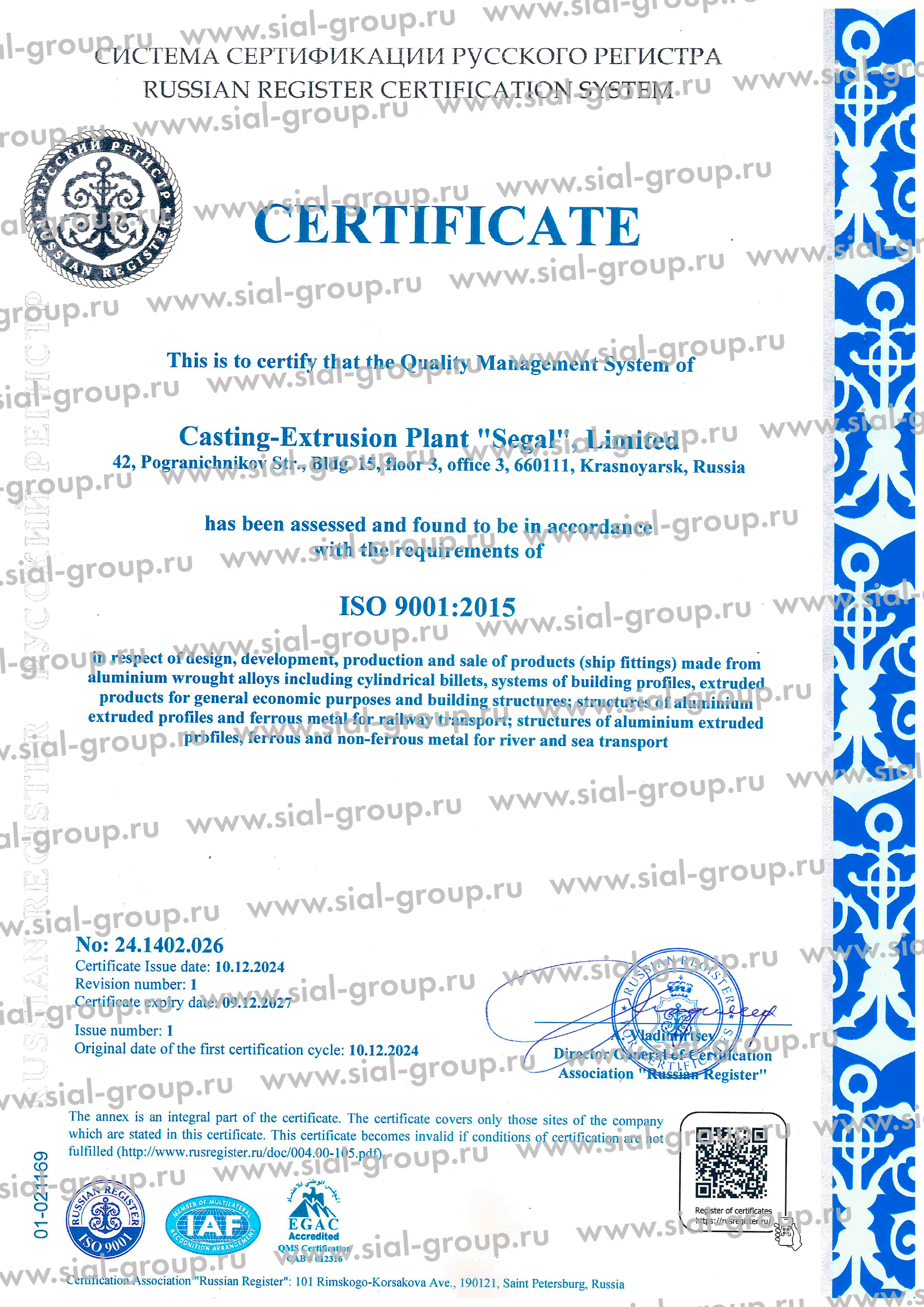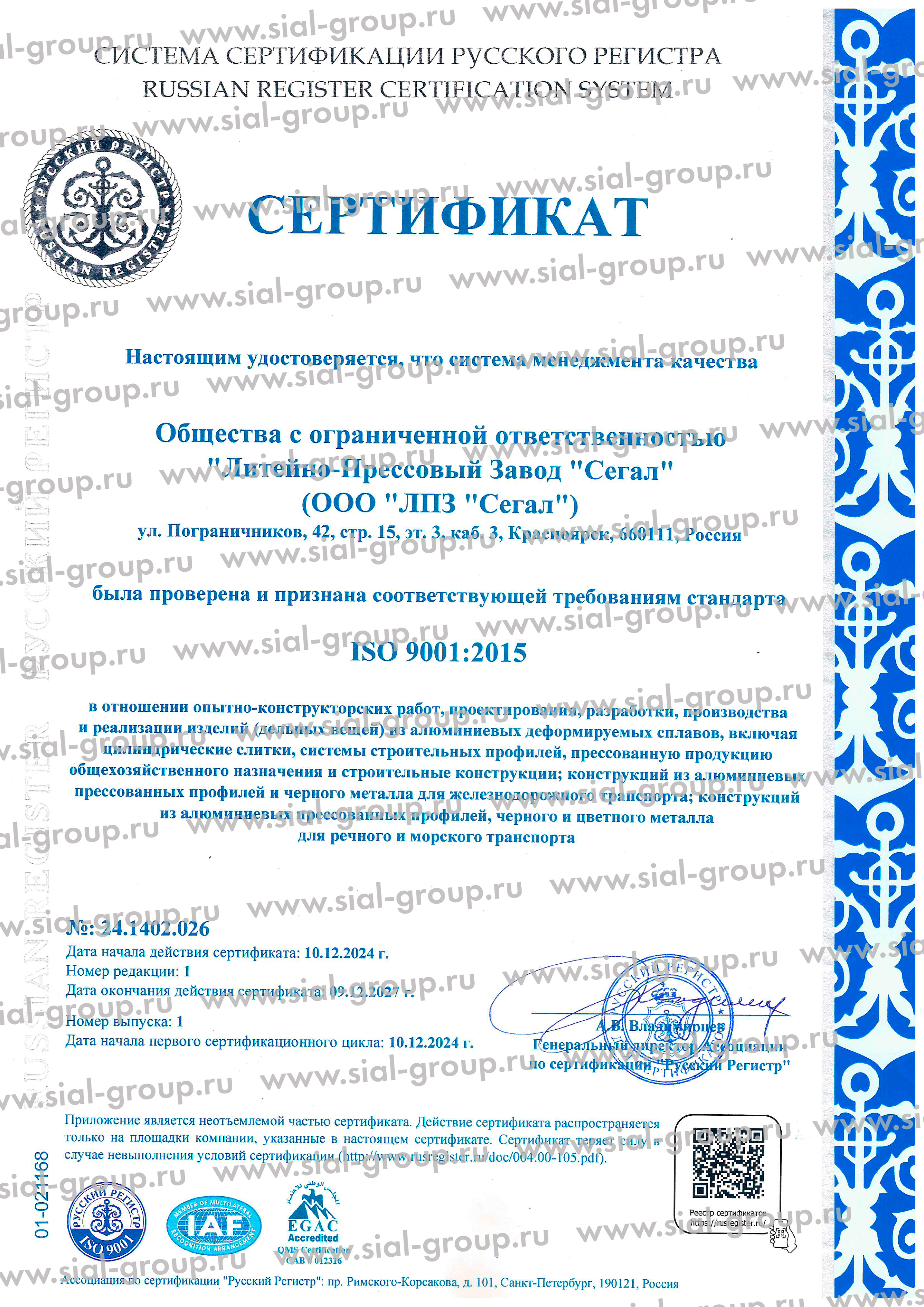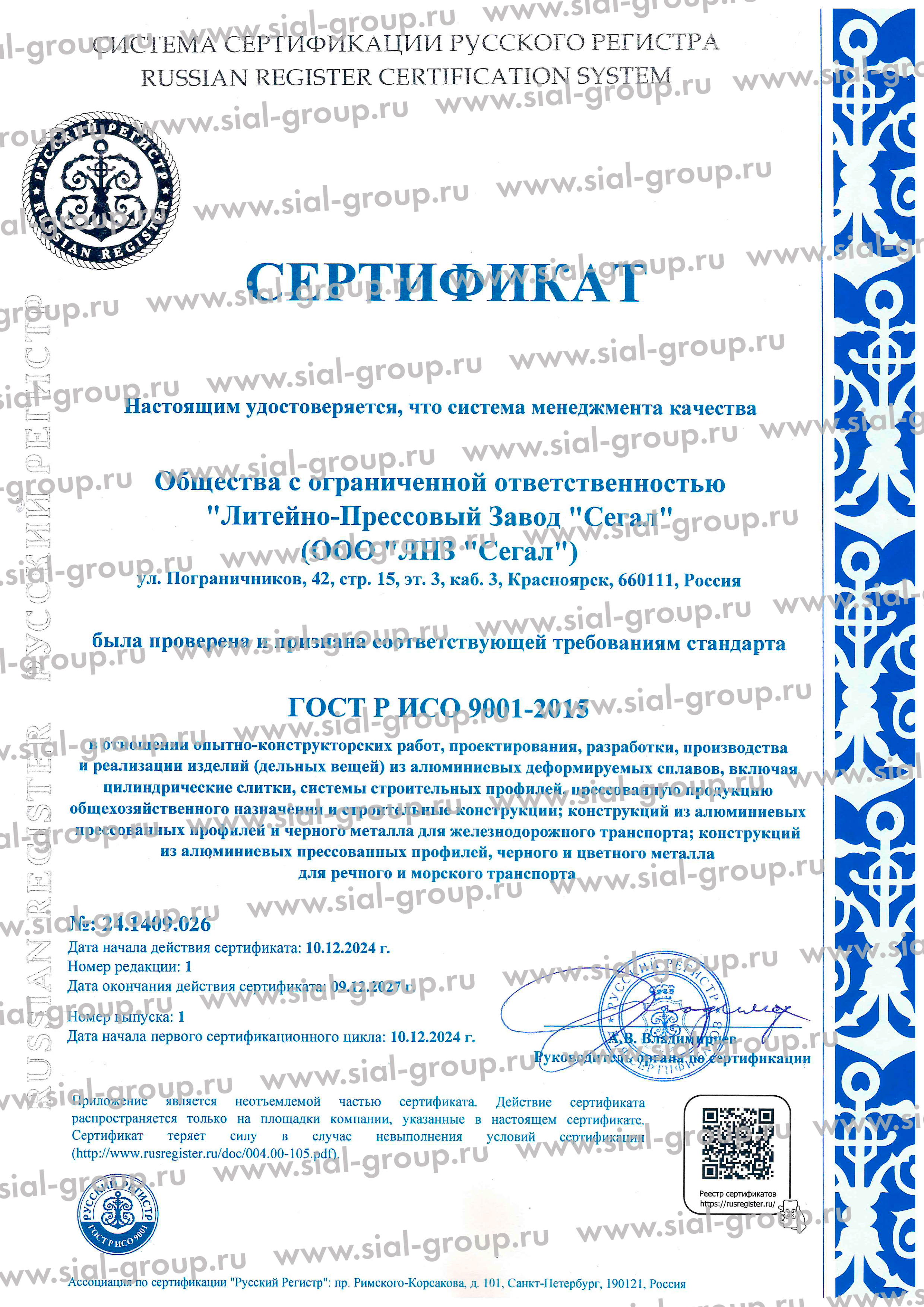 2024Сертификат соответствия системы менеджмента качества ГОСТ Р ИСО 9001:2015