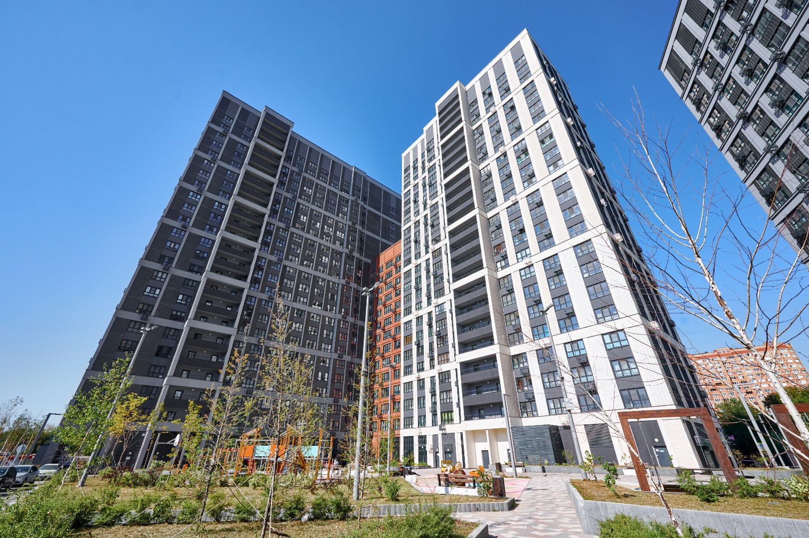 Три жилых корпуса переменной этажности, их объединяют общая подземная часть. Здания выполнены в едином стиле. Фасады облицованы бетонной плиткой под кирпич и кассетами из оцинкованной стали. Вместе с витражным остеклением они создадают контрастный и ритмичный образ комплекса.