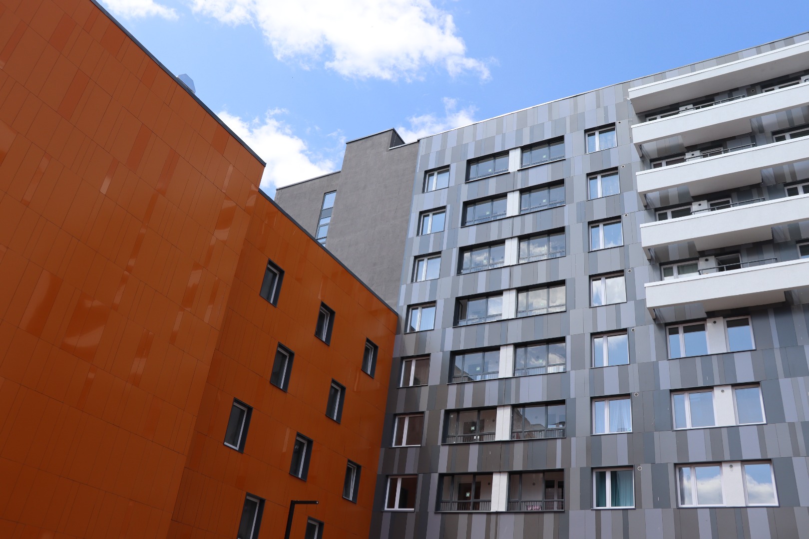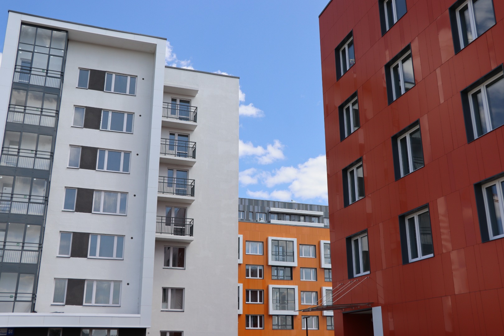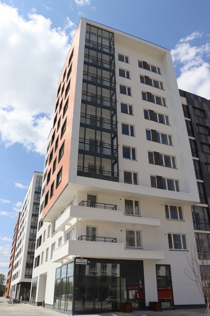 В данном жилом комплексе лоджии выполнены с применением системы СИАЛ КП40, первые этажи на системаз СИАЛ КП50 и КПТ74, а также смонтированы огнестойкие экраны СИАЛ КПТ60EI. На фасадах зданий также наша система – СИАЛ МКЛ.