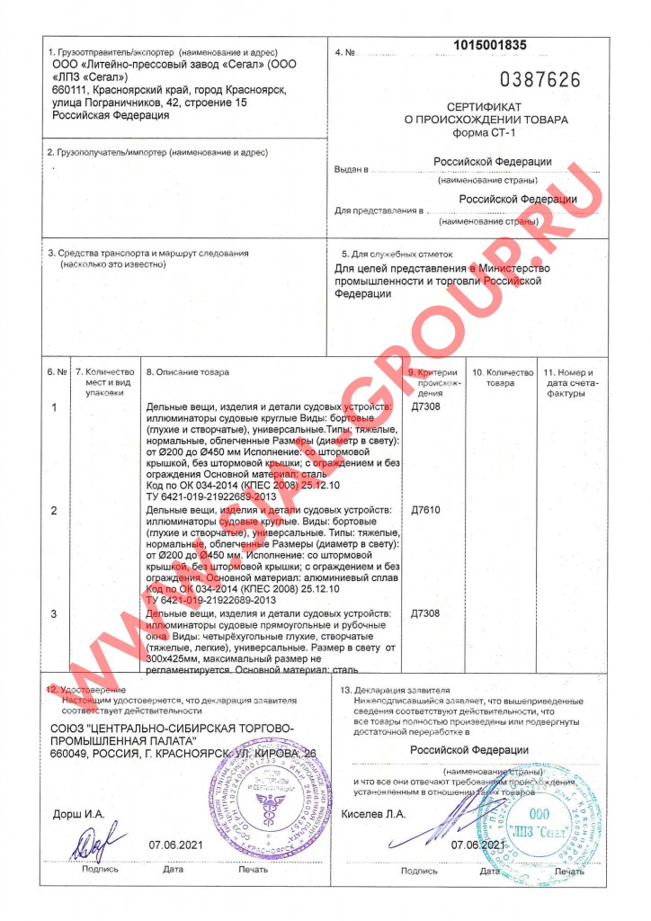 Сертификат происхождения СТ-1